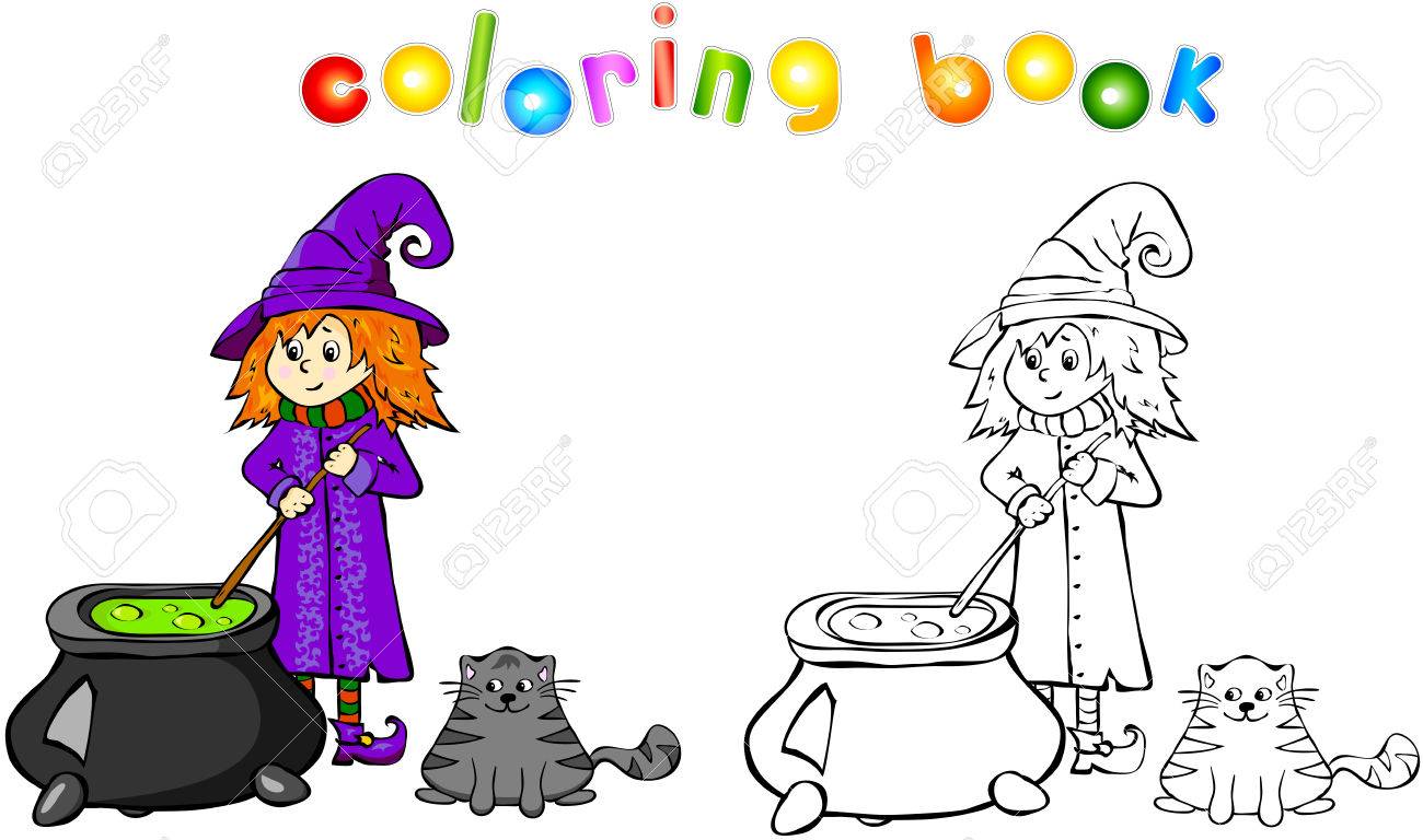 Fanny Cartoon Hexe Kocht Einen Trank In Einem Kessel Malbuch Fur Kinder Lizenzfreie Fotos Bilder Und Stock Fotografie Image 42568022